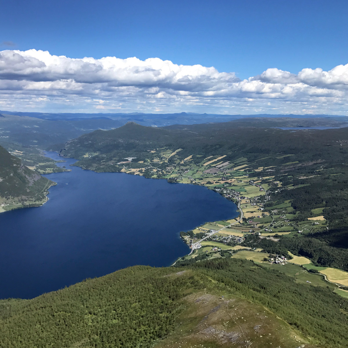 When you finally pass "Ukseporten", the last bend before reaching the mountain plateau at the top, we highly recommend continuing towards the cairn at the summit (ref. map below). From here you have a fabulous view down towards Vang and Vangsmjøse, which lies a thousand meters below you.
